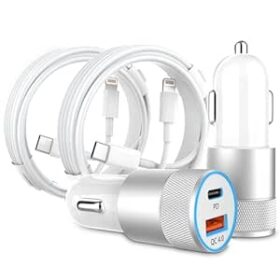 iPhone Fast Car Charger, 2 Pack48W Dual Port USB C Power Delivery All Metal Car Adapter