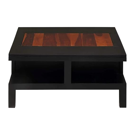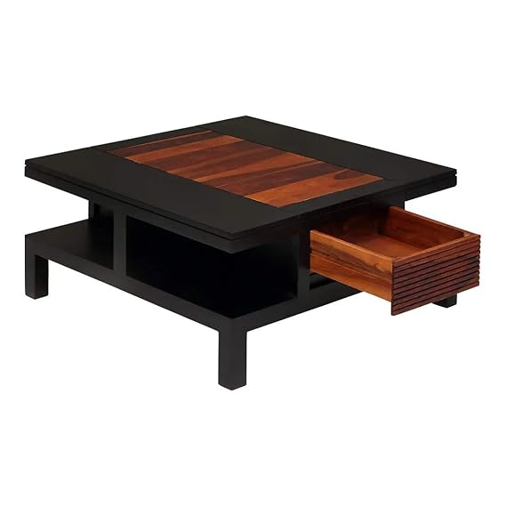 - G Fine Furniture Wooden Centre Coffee Table For Living Room & Drawing Room, Square Sofa Hall Center Table with 4 Shelf & 2 Drawer Storage, Solid Wood Sheesham, Black & Honey Finish
