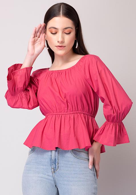 Hot Pink Off Shoulder Gathered Top