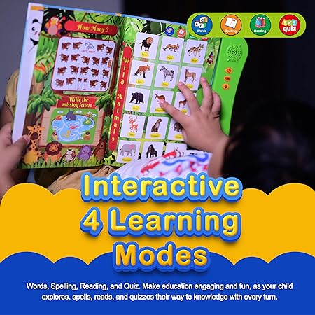 - HD QUALITY SPEAKER & 4 VERSATILE LEARNING MODES: Each book has 4 distinct modes which elevates your child’s IQ and helps him learn faster along with an interactive Quiz mode. The HD quality speakers enhance auditory engagement, providing a multi-sensory learning adventure.