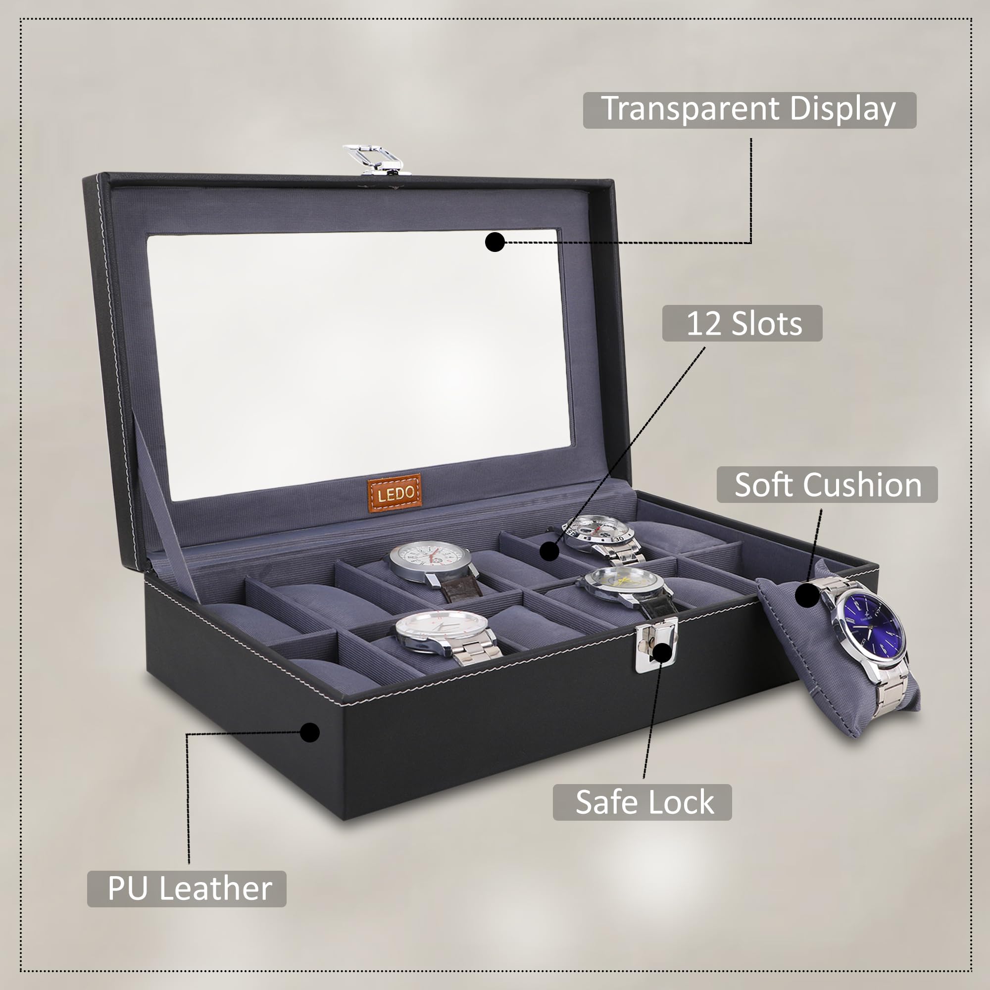 - This watch case keeps your watches always closer to your heart and make them special for every occasion.Feel free from unwanted damages of your watches with LEDO comfort watch box.