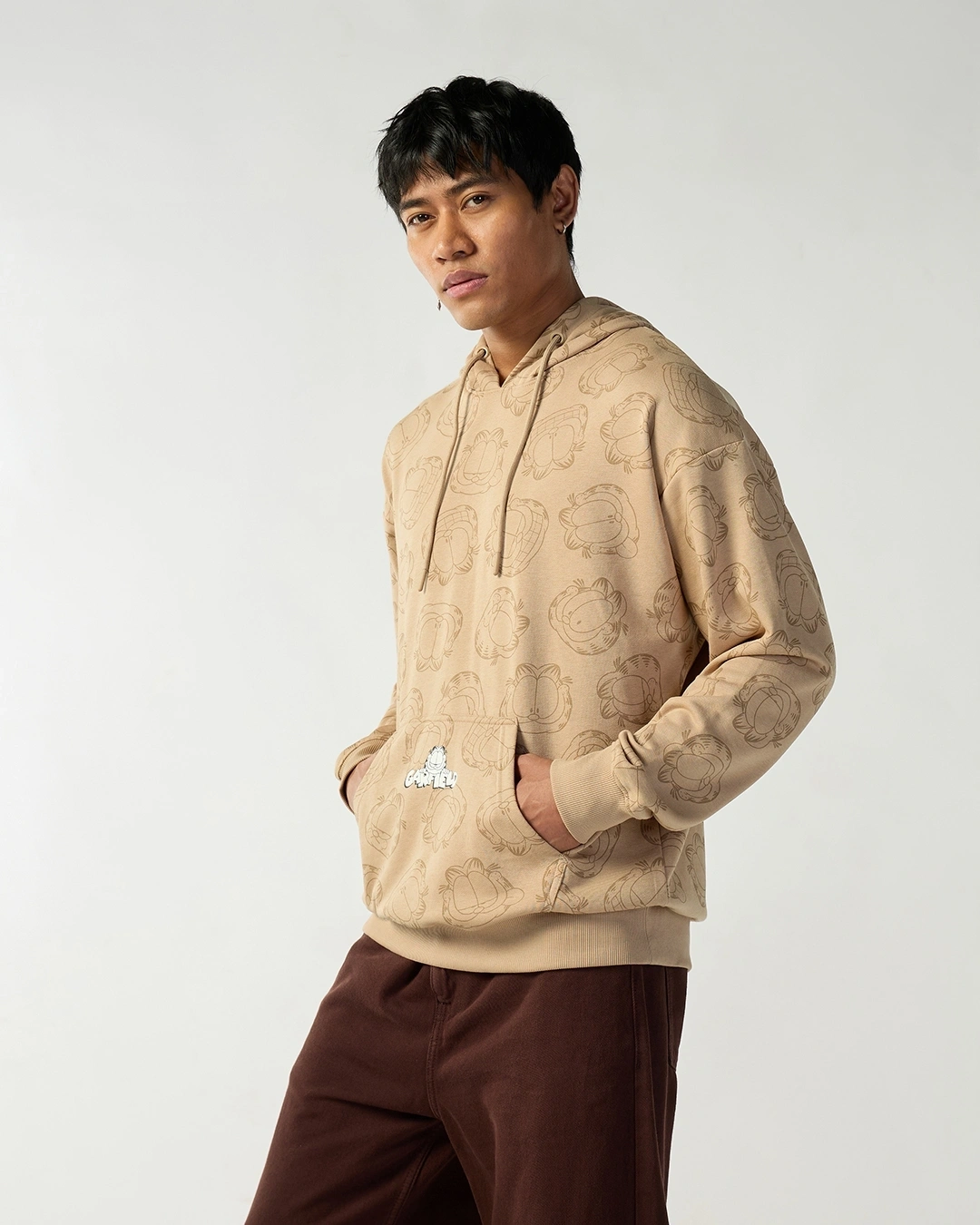 Men’s Beige Garfield All Over Printed Oversized Hoodies