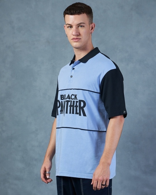 Men’s Blue Black Panther Graphic Printed Oversized Polo T-shirt