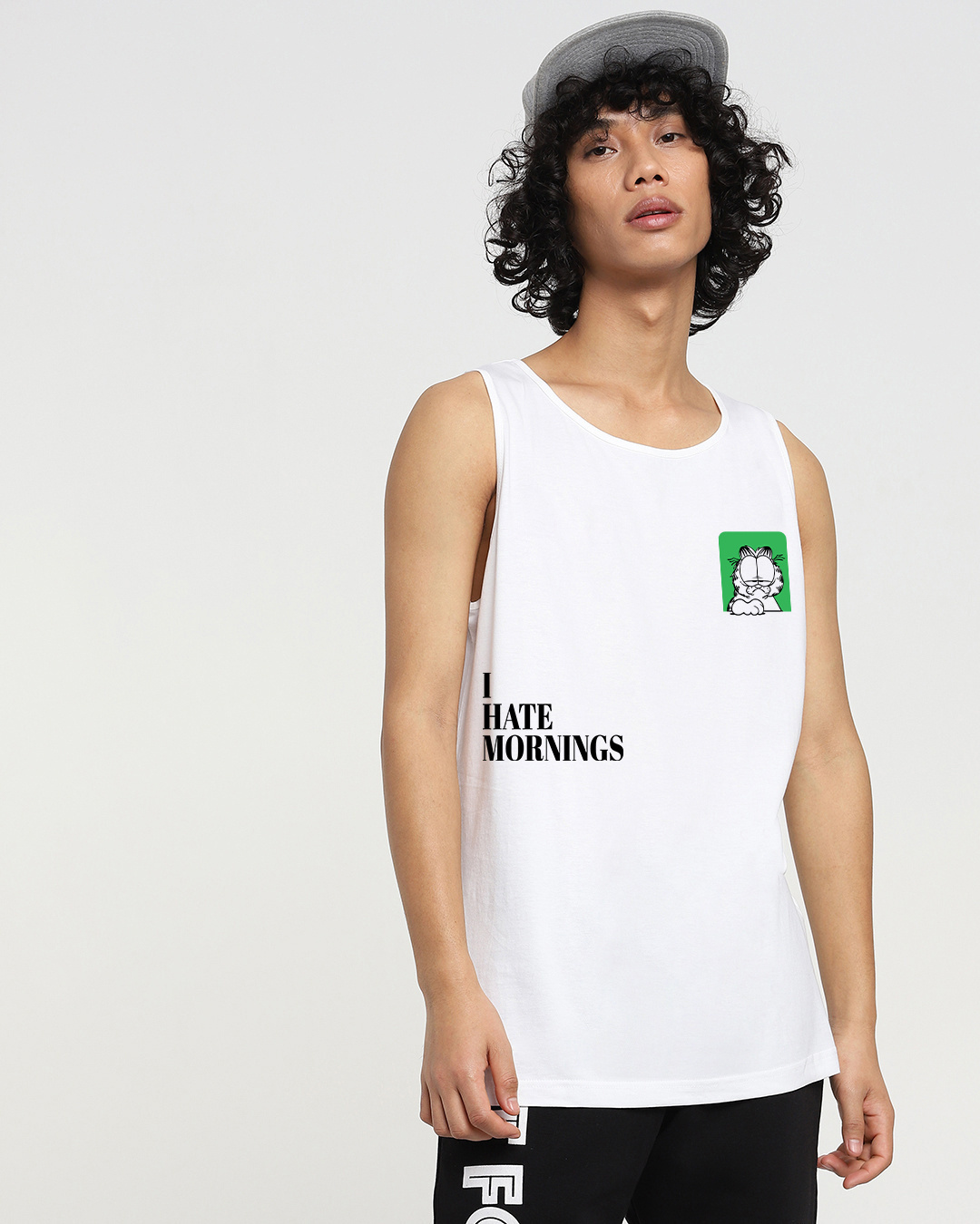 Men’s White Garfield Hates Mornings Graphic Printed Vest