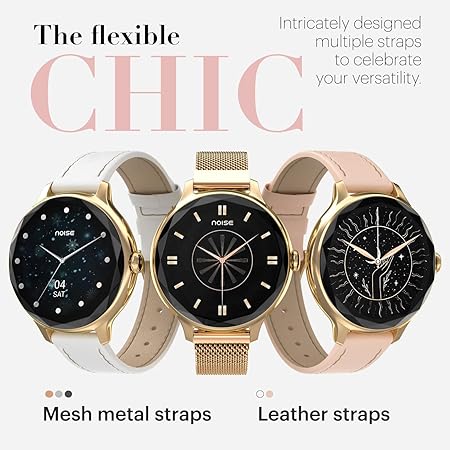 • Health & fitness features – Stay stylish and prioritise your health with 24X7 heart rate monitoring, SpO2 tracking, sleep tracking, female cycle tracking, and more, ensuring you stay on top of your well-being.;Additional features – Unlock the full potential of your smartwatch with over 100+ watch faces and a wide range of productivity tools. Seamlessly integrate weather updates, calculator, notifications, and reminders into your daily routine, maximising your productivity and convenience; In-the-box – The contents of the box include the NoiseFit Diva smartwatch, a magnetic charging cable, and the user manual, ensuring you have everything you need to get started and make the most of your new timepiece.