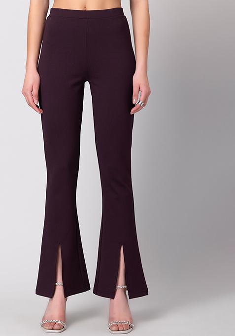 Purple Front Slit High Waist Flared Leggings