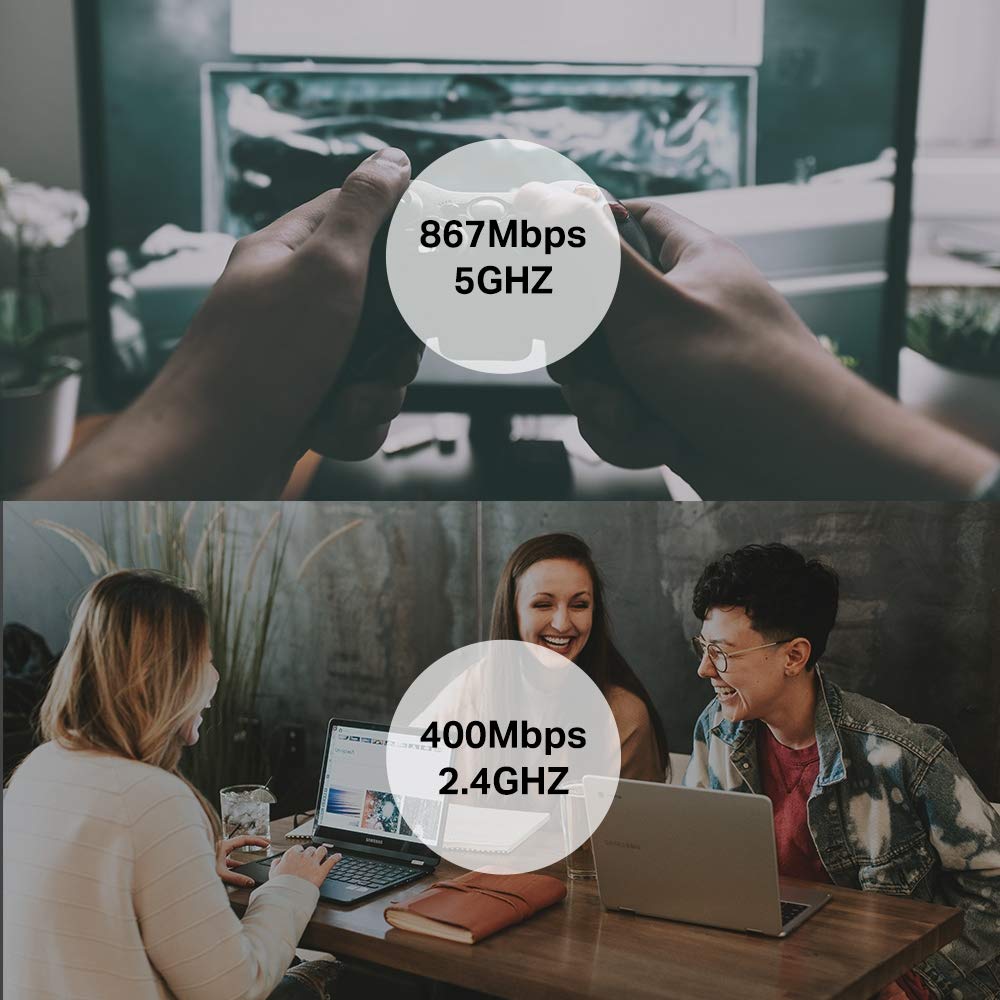 • Ultimate Wi-Fi Speed —— AC1300 (400 Mpbs on 2.4GHz band and 867 Mbps on 5GHz band) wireless speed with the next generation Wi-Fi – 802.11ac
