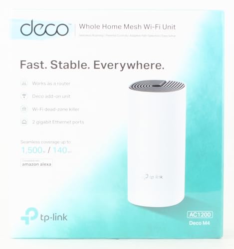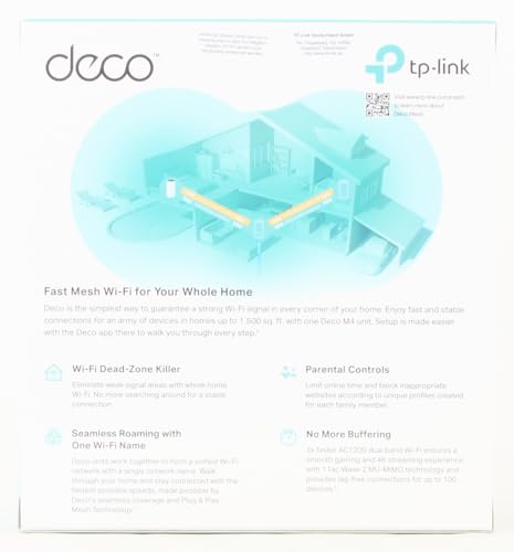 - 2,000 Sq. ft. Coverage —— A Deco M4 (1 pack) delivers Wi-Fi to an area of up to 2,000 square feet (Lab. data). More Deco’s can be added to the network anytime to increase coverage;Up to 1167 Mbps high-speed —— Deco M4 provides fast and stable connections with speeds of up to 1167 Mbps and works with the major internet service provider (ISP) and modem